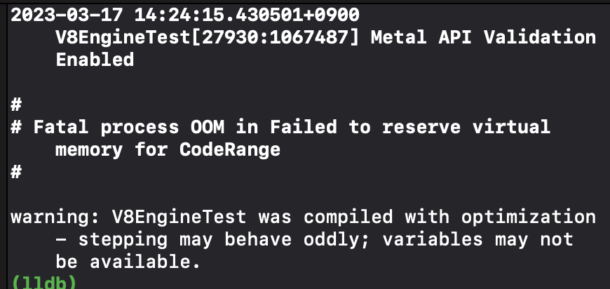 Fatal process OOM in Failed to reserve virtual memory for CodeRange