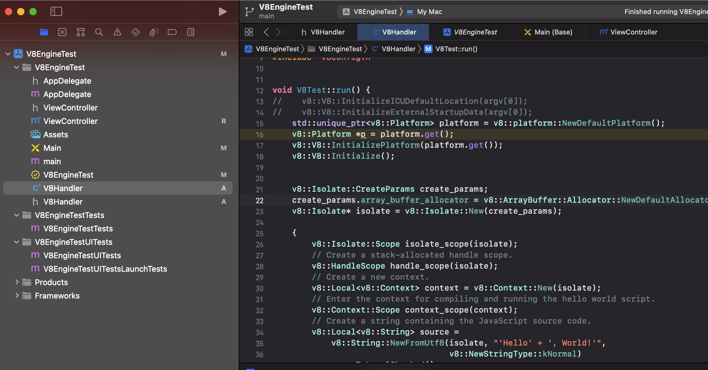 - v8 engine xcode build